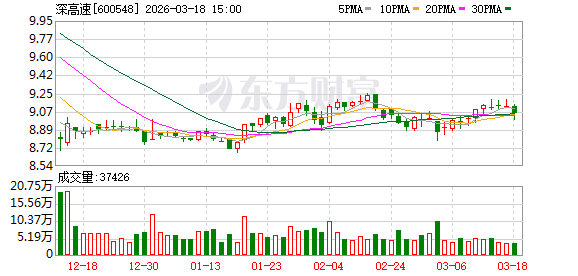 深高速(600548)披露控股子公司发布年度业绩的公告,3月18日股价下跌0.77%