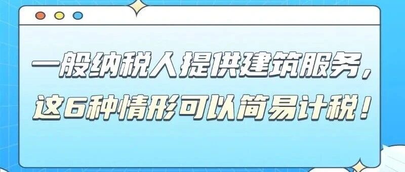 一般纳税人提供建筑服务,这6种情形可以简易计税!