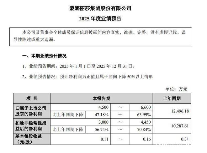 蒙娜丽莎预告2025年净利润腰斩,百万薪酬董秘同日辞任