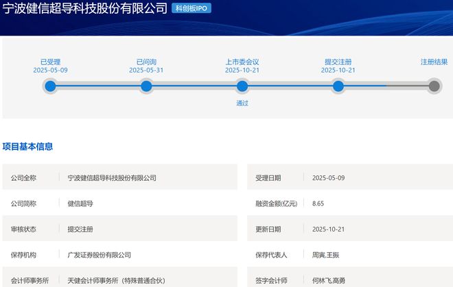 公司IPO进展与市场地位 - 公司科创板IPO申请已于10月21日过会 审核状态更新为“提交注册” [1] - 以装机量口径统计 2024年公司MRI设备超导磁体全球市占率位列第五 国内企业第二 [1] - 公司是全球最大的超导磁体独立供应商 [1] 产品与技术实力 - 公司已形成包括1 5T零挥发超导磁体 1 5T无液氦超导磁体 3 0T零挥发超导磁体和开放式零挥发超导磁体在内的产品矩阵 [3] - 在零挥发超导技术领域 公司追平了与国际巨头约20年的技术差距 [3] - 公司是国内最早规模化生产高场强超导磁体的厂商之一 自2015年以来在零挥发超导磁体领域与联影医疗同步打破欧美 日本厂商垄断 [3] 客户合作与行业影响 - 公司已与日本富士胶片集团 美国GE医疗 意大利百胜医疗 万东医疗 深圳安科 联影医疗 福晴医疗等国内外知名MRI设备厂商建立紧密合作关系 [3] - 公司作为独立供应商保障了国产磁共振产业核心部件的批量供应 有力推动了MRI设备国产化率的提升 [3] 财务表现 - 报告期内公司2022年营业收入为35893 45万元 2023年为45064 48万元 2024年为42549 75万元 2025年1月至6月为25209 81万元 [4] - 报告期内公司2022年净利润为3463 50万元 2023年为4873 47万元 2024年为5578 39万元 2025年1月至6月为3191 84万元 [4] 监管关注与业务模式 - 上市委会议问询要求公司结合市场空间 竞争格局 行业趋势 产品技术研发等情况 说明其独立供应商业务模式的稳定性 市场空间和成长性 [1]