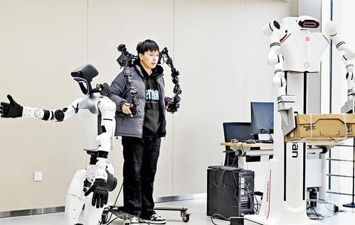 1月6日,在中国雄安集团数字城市科技有限公司的具身智能训练场内,数据采集员正对异构机器人进行 具身智能训练。 本报记者 刘光昱摄 (来源:河北日报) 转自:河北日报 异构机器人雄安进"课堂" 何为异构机器人?异构机器人具身智能训练项目负责人罗雨帆介绍,它们是指能力、构型、功能各不相 同的机器人组合。相较于同构机器人,异构系统能通过更灵活的协作,完成复杂任务。而具身智能则强 调机器人通过身体与真实环境交互,实现感知、决策、行动的闭环。在这里,足式、轮式、协作式机器 人形态齐全,来自不同厂商的"学员"正一同受训。 训练场采用1∶1实景还原,打造了迎宾导览、工业搬运、家居生活、商业零售、物流装配五大真实场 景。在家居生活区,数据采集员李曼晔正遥控机器人"小乐"学习烤面包。只见"小乐"稳稳取出一片面 包,精准放入早餐机。"我们把流程拆解成一个个动作指令,让机器人逐步掌握厨房工作。"李曼晔说。 不远处,工业搬运场景中的机器人正将货物整齐码放至指定位置。商业零售区内,另一款机器人则模仿 数据采集员的动作,从货架上选取商品放入购物车。 "与传统单厂商训练场不同,这里实现了多品牌机器人的统一管理,数据采集、标注和模型训练全流 ...