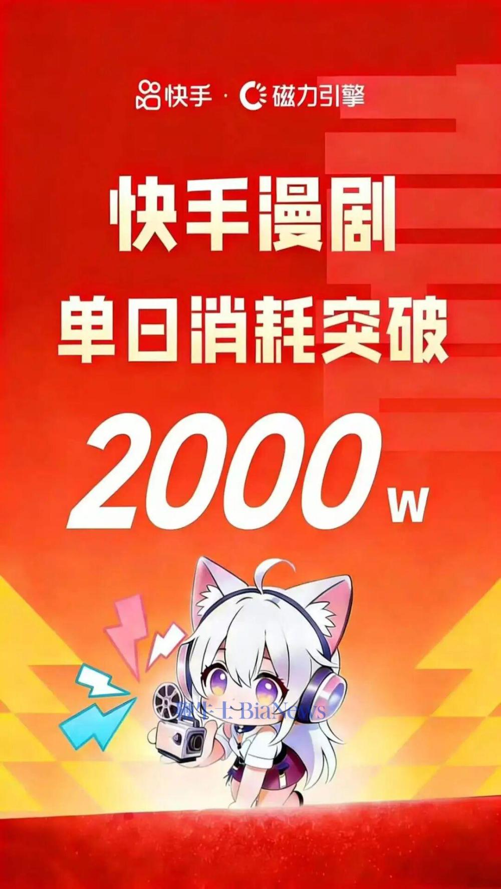 快手漫剧业务表现 - 公司旗下快手漫剧单日消耗金额于3月30日突破2000万,创下峰值 [1][6] - 此前在3月初,该业务单日消耗金额刚突破1500万 [4][9] - 在不到一个月的时间内,单日消耗金额增长500万,增速显著 [6][12] 漫剧行业发展态势 - 漫剧行业正从试水阶段走向规模化与主流化 [6][12] - 漫剧已成为短剧行业内新晋的第一赛道 [6][12]