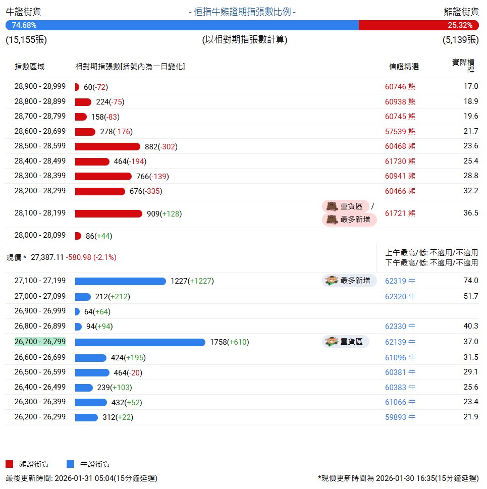 恒指牛熊街货比(75:25)︱1月31日