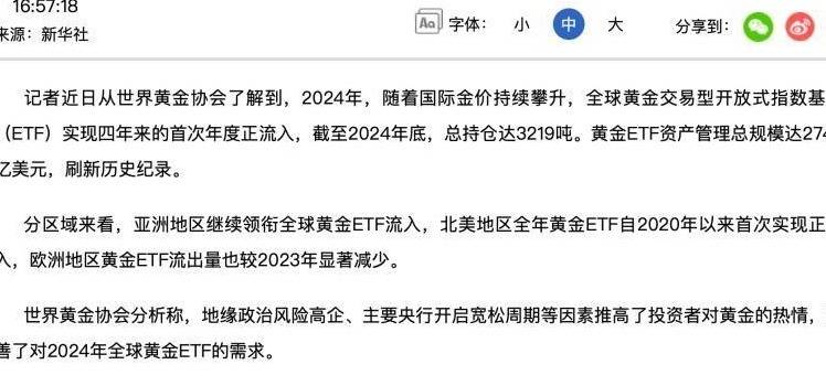 深圳商报·读创客户端记者 胡星访 文/图 2026年1月29日,恒生黄金ETF(代码:03170.HK)在香港交易所正式挂牌交易,成为香港首只可通过银行直接兑换实物黄金的实物黄金ETF。公开数据显 示,上市首日,该ETF涨幅达9%,收报17.44港元。业内分析,该产品的上市不仅填补了香港市场相关领域的空白,更搭建起"纸黄金"与实物黄金的无缝衔 接桥梁。同步凸显出香港与内地黄金ETF市场的差异化特征。 首只实物黄金ETF挂牌 "所谓实物黄金ETF,是一种以实物黄金为唯一底层资产的开放式基金,通过交易所上市交易,投资者可像买卖股票一样便捷交易,无需自行承担实物黄金 的存储、鉴定等成本。"一位证券公司理财顾问和记者说道:"其核心运作依赖实物申赎机制,授权参与者可通过实物黄金申购或赎回ETF份额,确保ETF价 格与现货黄金价格高度联动是对冲通胀、分散资产组合风险的常用工具。" 世界黄金协会在 2025 年 2 月 5 日发布的《2024 年四季度及全年全球黄金需求趋势报告》中指出:2024 年底全球黄金 ETF 资产管理总规模达 2740 亿美元, 刷新历史纪录。公开数据显示,截至2026年1月14日,境内黄金相关商 ...