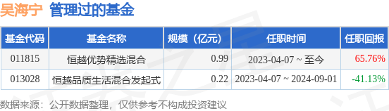 恒越智选科技混合A基金经理变动:增聘吴海宁为基金经理