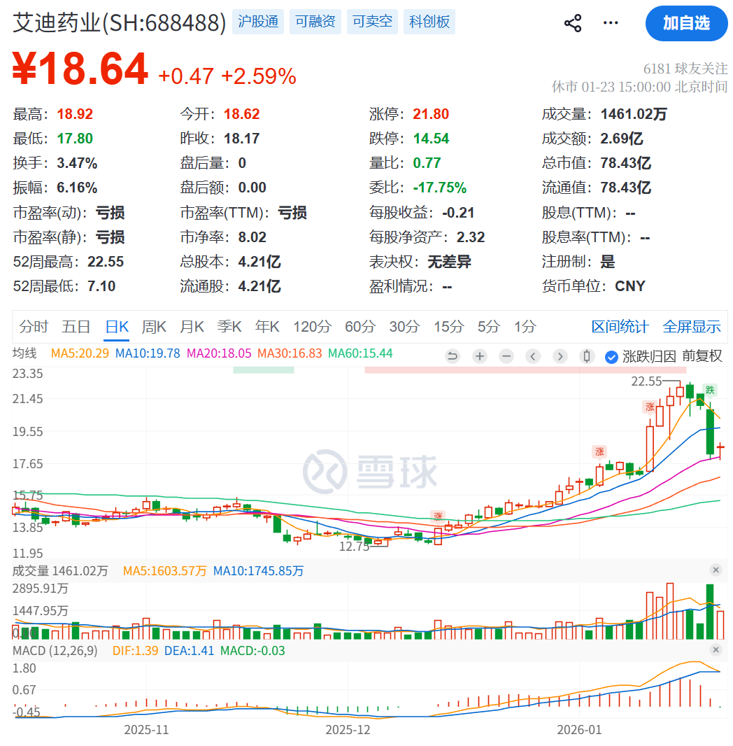 艾迪药业:预计2025年度亏损同比下降约88.67%至83.00%