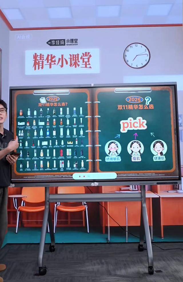 覆盖护肤步骤、抗皱紧致、痘痘消除、上妆技巧等多个常见美妆需求,力求为不同肤质的消费者提供一 站式解决方案。最后是"课后跟练"设计,通过视频跟学形式,方便观众巩固所学知识,加深理解。 本次李佳琦直播间小课堂的亮点颇为突出。在教学内容上,李佳琦直播间主打"教你怎么选",特别新设 了美妆"科目一"入门课程,旨在零门槛地指导干皮、油皮、敏感肌、痘痘肌等不同肤质的人群如何科学 选择适合自己的护肤品。在内容广度上,小课堂的攻略覆盖范围广泛,不仅限于美妆领域,更延伸至护 肤、母婴、潮电家装、宠物等多个热门品类,力求满足"所有女生"的多样化购物需求。在答疑机制上, 小课堂设置了"6+1"在线答疑模式,即6节针对美妆品类的专业课程,辅以1节省流精选答疑课,系统性 地帮助观众进行产品搭配。 10月7日,李佳琦直播间双11小课堂正式开课,为今年年度双十一大促预热。此次小课堂活动持续一 周,内容全新升级,旨在通过系统化、趣味性的方式,帮助消费者更清晰地了解产品使用误区,掌握护 肤美妆知识,并在互动中熟悉双11玩法。 今年李佳琦直播间的小课堂结构清晰,分为三大核心板块。首先是"误区自测"环节,重点帮助观众分辨 日常生活中常见的产品使用 ...