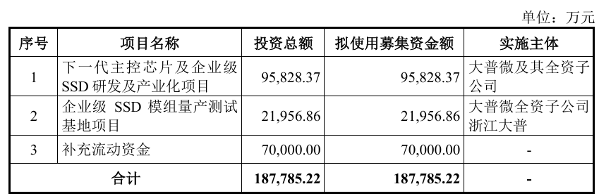 公司IPO与募资计划 - 深圳大普微电子股份有限公司于12月25日深交所创业板IPO通过上市委会议,保荐机构为国泰海通证券,拟募资18.7785亿元 [1] 公司业务与市场地位 - 公司主要从事数据中心企业级SSD产品的研发和销售,是业内领先、国内极少数具备企业级SSD“主控芯片+固件算法+模组”全栈自研能力并实现批量出货的半导体存储产品提供商 [1] - 公司专注数据中心企业级SSD,产品代际覆盖PCIe 3.0到5.0,报告期内企业级SSD累计出货量达4,900PB以上,其中搭载自研主控芯片的出货比例达75%以上 [1] - 根据IDC数据,最近三年国内企业级SSD市场中公司占有率稳居市场前列,国际厂商仍占据主导地位 [1] - 公司是全球首批量产企业级PCIe 5.0 SSD和大容量QLC SSD的存储厂商,也是全球极少数拥有SCM SSD和可计算存储SSD两类前沿存储产品供应能力的存储厂商 [2] 技术与研发实力 - 公司PCIe SSD系列产品具备出色的读写速度、耐用性、低延时以及远低于JEDEC标准的平均故障率,产品性能处于国际先进水平 [1] - 截至2025年6月30日,公司已取得国内外发明专利162项,可计算存储、智能多流、智能故障预测等多项企业级SSD技术处于业内领先水平 [2] - 公司拥有一支具备前沿存储技术和丰富行业经验的主控芯片和SSD模组研发团队,持续投入研发资源 [2] 募集资金用途 - 本次发行募集资金扣除发行费用后,将投入以下项目:下一代主控芯片及企业级SSD研发及产业化项目(拟使用募集资金95,828.37万元)、企业级SSD模组量产测试基地项目(拟使用募集资金21,956.86万元)、补充流动资金(拟使用募集资金70,000.00万元),合计187,785.22万元 [3] 财务表现 - 2022年度、2023年度、2024年度及2025年1-6月,公司营业收入分别约为5.57亿元、5.19亿元、9.62亿元及7.48亿元人民币 [3] - 同期,公司净利润分别约为-5.34亿元、-6.17亿元、-1.91亿元及-3.54亿元人民币 [3] - 2025年1-6月,公司资产总额为198,114.05万元,归属于母公司所有者权益为48,120.53万元,资产负债率(母公司)为63.40% [4] - 2025年1-6月,公司研发投入占营业收入的比例为17.74%,2024年度、2023年度、2022年度该比例分别为28.51%、51.72%、34.82% [4] - 2025年1-6月,公司经营活动产生的现金流量净额为-46,109.12万元 [4]