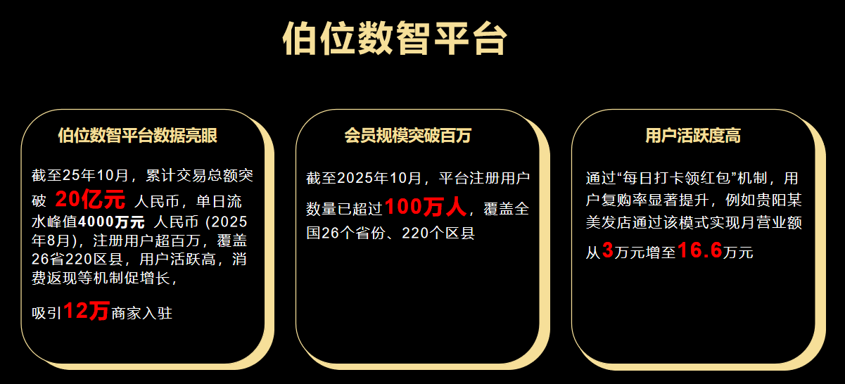 公司业务模式与市场表现 - 伯位数智旗下“数智红包”模式在粤港澳大湾区贵商首发大会上获得金奖[1] - 业务已覆盖全国26个省份的300余个区县,吸引超过12万商家主动入驻[1] - 日活跃会员突破百万,累计促成的交易流水已超过20亿元[1] 核心商业模式创新 - 核心突破在于将返利从“预期等待”变为“即时激励”,重构返利体验[3] - 运作基石是“商家让利 + 平台赋能 + 用户获益”的三角共赢模型[3] - 用户消费后,次日(周一至周五)签到即可领取现金红包,并支持实时提现至微信零钱[4] - 与传统需要漫长排队、兑换复杂的积分模式形成鲜明对比[4] 运营与资金体系 - 资金主要来源于入驻商家的自愿让利,通常为消费额的7%-30%,直接进入奖励池[4] - 平台通过广告收入、系统服务费及资金沉淀利息作为补充,保障红包发放可持续性[4] - 每日仅从总资金池中释放20%用于红包发放,避免透支[6] - 周末暂停发放是动态风控的一部分,旨在让资金池休整沉淀,平滑兑付压力[4] 风险控制与反作弊机制 - 核心熔断机制:系统实时监控,一旦当日红包发放金额超过池内余额的30%,释放比例会立即自动下调至10%[6] - 采用权重算法:根据多维数据为交易赋予权重,虚假刷单交易权重极低,无利可图[6] - AI实时风控系统监控交易频次、金额、关系网络等异常模式,快速识别与拦截可疑交易[6] 商家合作与锁定策略 - 对商家实行“零门槛”入驻,支付手续费低至1.3%,具有显著成本优势[6] - 创新“跨界收益锁客”机制:商家推荐顾客成为会员后,该顾客未来在平台内任何其他商家消费,原推荐商家能持续获得一定比例(如1.2%)的跨店流水奖励[6] - 此机制为商家构建了“被动收入”管道,提升了入驻积极性和留存率[6] 模式竞争优势总结 - 可靠性优势:“熔断机制”与“权重算法”构成双重风控防火墙,使商业模式更具韧性与可信度[9] - 体验性优势:真实现金、次日可提的极简体验,直击用户心理,参与动力和传播意愿强[9] - 共赢性优势:对商家实现低费率“降本”和跨界分成“开源”,将平台增长与商家利益深度捆绑,形成强大网络效应[9] 行业意义与价值定位 - “数智红包”模式提供了一种数字时代下的“可信激励”范式思考[12] - 通过技术手段(算法风控)和机制设计(即时激励、跨界分成),在消费者、实体商家与数字平台之间建立了更透明、更即时、更可持续的价值连接与分配方式[12]
