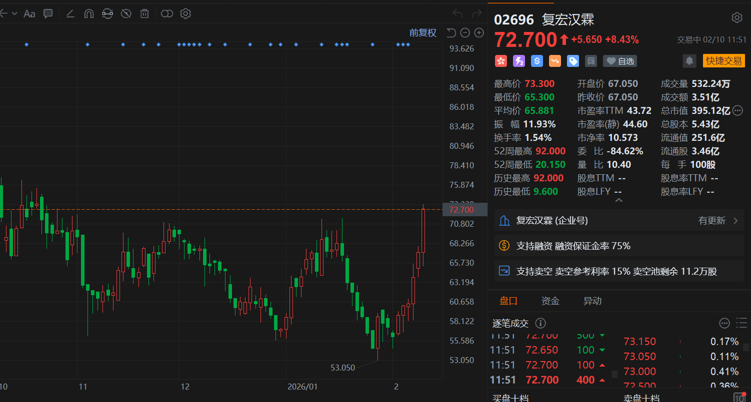 港股异动丨多重利好叠加,复宏汉霖续涨超8%,6日连涨30%走出反转行情