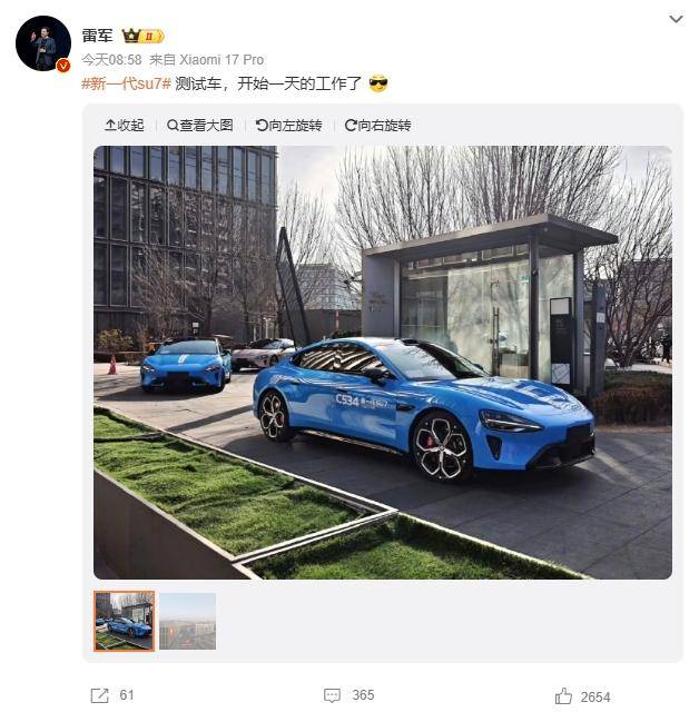 雷军晒新一代SU7照片:称参加过多次测试