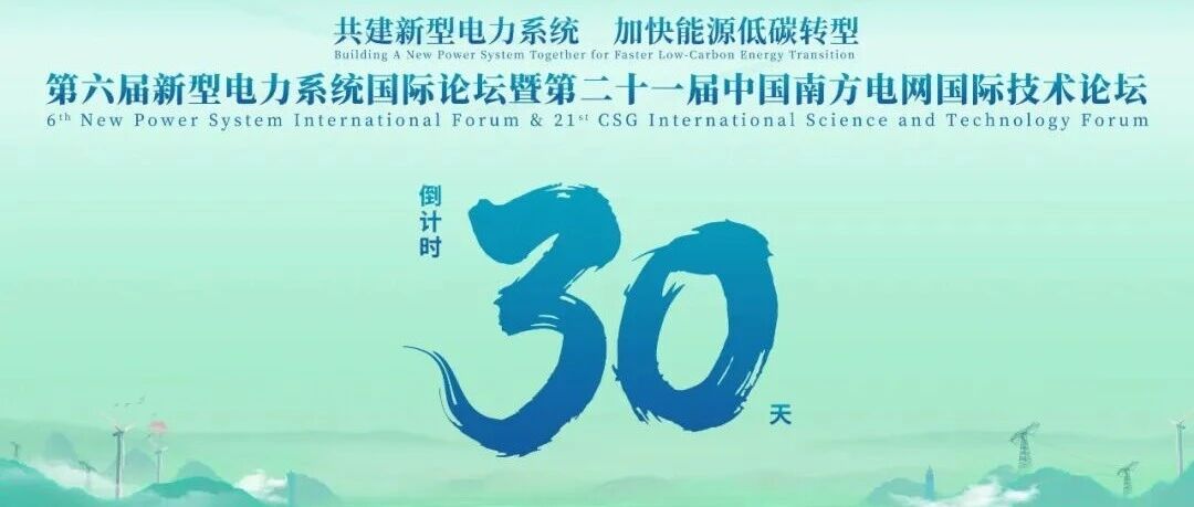 倒计时30天!第六届新型电力系统国际论坛暨第二十一届中国南方电网国际技术论坛报名进行中