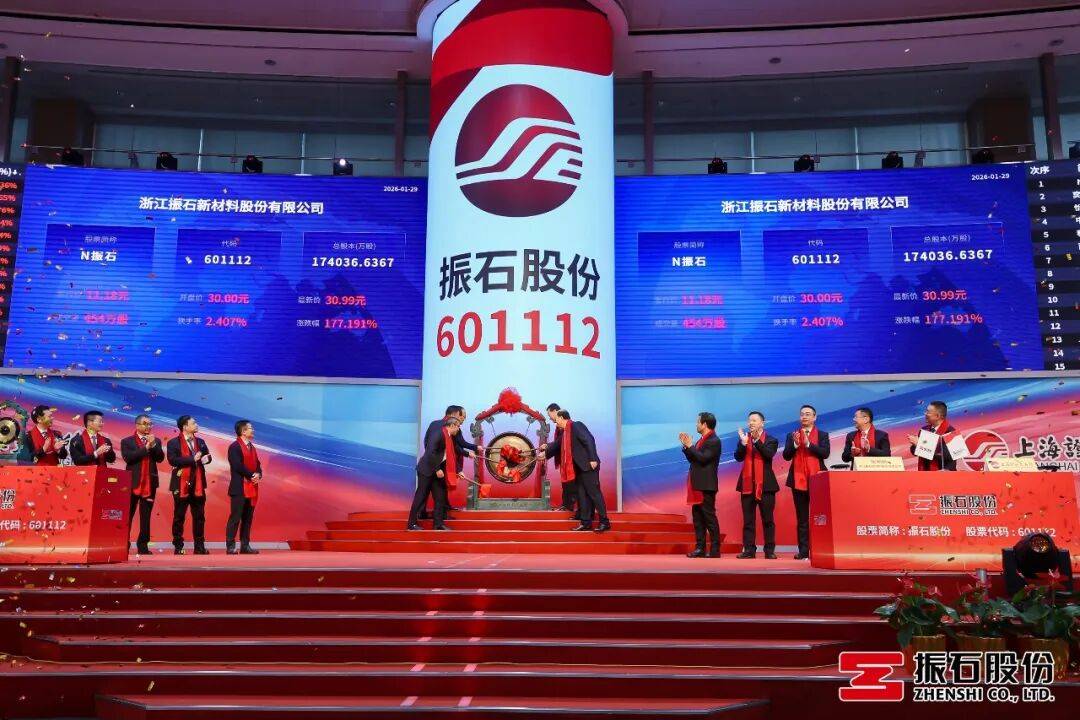 铿锵锣声 眼下,振石股份新材料产业园已全面投运,这里将规划建成全球玻纤使用量最大、覆盖行业领域最广、复合新材品种最多的生产基地,推动复合材料产业 绿色高质量发展。依托稳固的风电基本盘,振石股份正积极构建多元化增长格局,在光伏、新能源汽车等新兴领域开辟第二增长曲线,已成为多家行业头 部企业的核心供应商。 上市不是终点,而是新的起点。未来,振石股份将以上市为起点,持续巩固在风电材料领域的引领地位,推动叶片大型化、轻量化技术迭代,同时聚焦光 伏边框、新能源汽车复材等"四新"市场,开辟新的增长极。 敲响桐乡新一年"开门红"! 今天(1月29日)上午,浙江振石新材料股份有限公司正式在上海证券交易所主板挂牌上市,成为沪深主板2026年浙江首家A股上市公司,资本市场"桐乡 板块"再添一员猛将! 自2025年6月25日申报获受理,至11月18日成功过会,振石股份仅用146天便圆满完成关键征程,创下2025年抽中现场检查的IPO项目中最短过会纪录,堪 称"振石速度"的又一生动注脚。 "这一刻,不仅是振石股份二十余年发展史上的重要里程碑,更是我们践行'新材料、新领域、新高度、新贡献、新发展'使命的新起点。"上市仪式上,振 石控股 ...