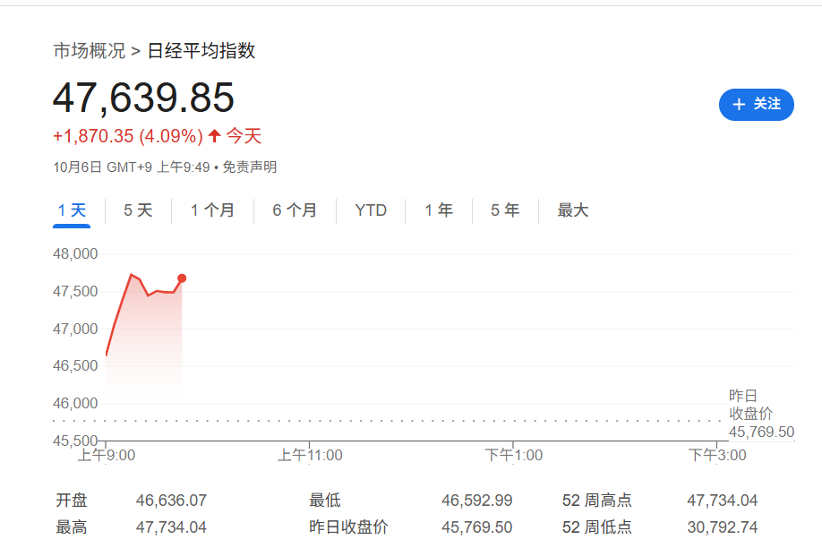 政治事件与市场预期 - 高市早苗赢得日本执政党党首选举,被视为已故首相安倍晋三的门徒,市场预期其将重启以大规模财政刺激和超宽松货币政策为核心的“安倍经济学”议程 [1][8][9] - 高市早苗的政策主张包括增加对地方政府的补贴、不排除下调消费税,并认为日本央行加息是“愚蠢的”,主张政府与央行需在经济政策上保持一致 [9][9][9] - 高市早苗的胜选对许多预期财政保守派获胜的投资者而言是一个意外,市场正为日本可能出现的财政扩张做准备 [10][10][10] 股市反应 - 市场预期“安倍经济学”回归迅速点燃日本股市,日经225指数周一开盘后大涨超过4%,创下数月来最大单日涨幅 [1][1] - 日本东证指数同日上涨3% [1] - 分析认为高市早苗胜选对股市而言是一个积极的惊喜,“高市早苗交易”基本上对股票有利 [10][8][10] 外汇市场波动 - 日元兑美元汇率大幅走弱1.5%,逼近150的关键水平 [3] - 日元兑欧元汇率已跌至历史新低 [3] - 交易员预期“安倍经济学”时代回归可能会进一步削弱日元 [8] 债券市场影响 - 市场担忧更大规模财政支出意味着政府需要发行更多债券,增加日本债务负担,债券市场面临压力 [11] - 策略师警告若无“安全网”配合,日本国债可能面临抛售压力,收益率曲线可能变得更加陡峭 [12][8][12] - “高市早苗交易”因存在大量新财政刺激的风险,可能导致日本国债和外汇市场出现波动 [10]