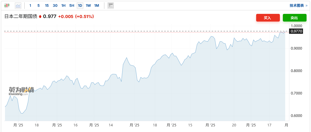 日本两年期国债收益率升至1.03%,创2007年8月来最高