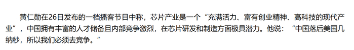 英伟达CEO表态与公司立场 - 英伟达CEO黄仁勋表示中国在芯片领域仅落后美国“几纳秒”,并强调美国应允许科技企业在中国市场竞争[1][2] - 黄仁勋呼吁美国确保全球范围内的AI芯片流通,包括中国市场,并强调技术进步不是零和博弈,问题应通过对话解决[8][9] - 黄仁勋称中国市场对英伟达至关重要,公司在中国服务了30年,见证了中国科技行业的活力与潜力[9] 中国市场监管行动与英伟达处境 - 中国市场监管总局于9月15日宣布对英伟达展开进一步反垄断调查,指控其未履行2020年收购以色列芯片厂商迈络思时的承诺[4] - 中方批准该笔69亿美元收购案时要求英伟达不得强制搭售或附加不合理交易条件,并公平向中国市场供应产品,但英伟达以美方出口管制为由停止向中国供应多款GPU加速器[4] - 这已是中方第二次对英伟达发起类似调查,消息公布后公司股价盘前一度下跌超过2%[5][7] 中美科技博弈下的市场影响与竞争格局 - 美方不断加严对华芯片出口限制,直接影响英伟达在中国市场的布局,高端芯片H100、A100被禁售后,公司推出了市场表现不佳的“减配版”H20芯片[11] - 美方要求英伟达上缴在华销售额15%作为出口许可费用,2025年第一季度公司因出口受限损失了25亿美元额外收入[11] - 中国芯片企业快速崛起,华为的昇腾系列芯片在2022年已占国内智算中心市场79%的份额,并公布了未来三年的迭代路线图,阿里巴巴、腾讯等巨头也在加大研发投入[11] 行业宏观环境与未来展望 - 中方表示反对在经贸科技问题上采取歧视性措施,愿与各方保持对话合作,维护全球产业链和供应链稳定[11] - 英伟达的处境反映了全球科技产业链的复杂性,美方的限制政策效果未知,而中国企业的技术追赶正在加速[12] - 全球化的科技产业链需要合作来推动技术进步,在竞争与合作之间找到平衡将直接影响行业未来走向[12][14]