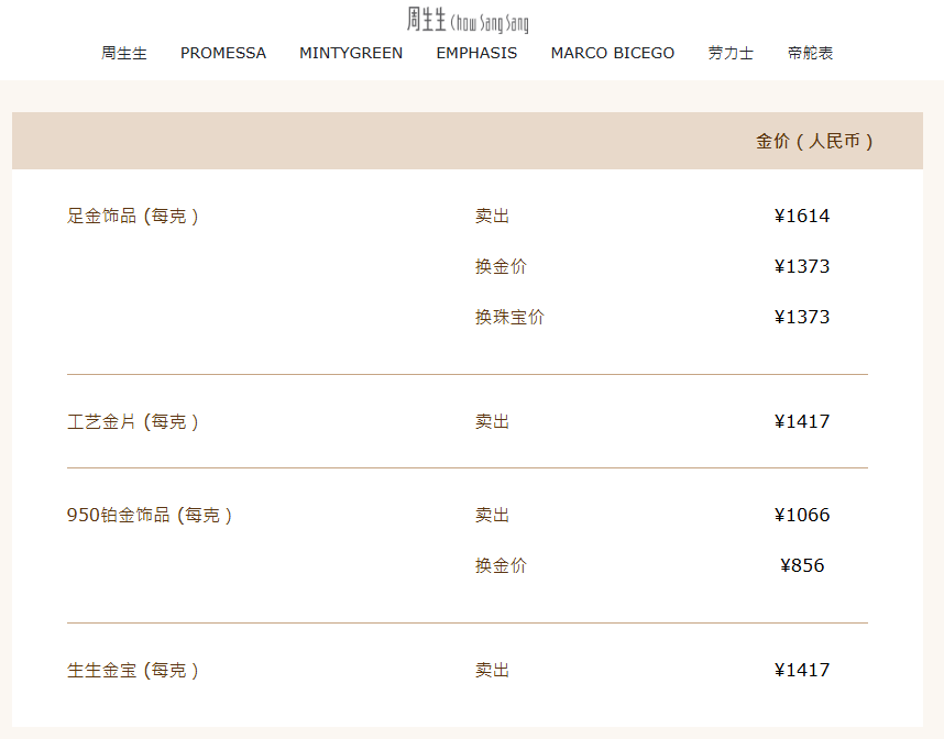 而就在昨日(1月27日)晚间,易方达黄金主题LOF(A类份额)、国投白银LOF(A类份额)发布暂停申购及定期定额投资业务的公告。 业内人士提醒,黄金、白银经历前期较大涨幅之后,短期或面临回调压力。投资者需保持理性,防范市场可能出现的"冲高回落",切忌追高。 来源:羊城晚报 1月28日,现货黄金延续涨势,向上触及5220美元/盎司,日内涨0.78%。 同日,现货黄金再创新高,首次突破5200美元/盎司。国内黄金饰品价格对比显示,多家黄金珠宝品牌当日公布的境内足金首饰价格大幅上调,周生生报 价1614元/克,周大福报价1618元/克,老凤祥报价1620元/克,老庙黄金报价1612元/克。 | 周王王 (how Sang Sang | | | | | | --- | --- | --- | --- | --- | | 周生生 PROMESSA | MINTYGREEN | EMPHASIS | MARCO BICEGO | 劳力士 帝舵表 | | | | | | 金价 ( 人民币 ) | | 足金饰品 (每克 ) | | 卖出 | | ¥1614 | | 换金价 | | | | ¥1373 | | 换珠宝价 | | ...