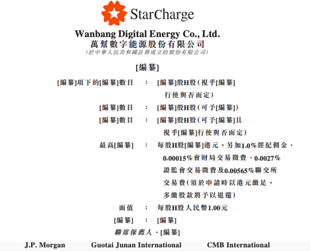 消息显示,80后明星企业家邵丹薇与其丈夫丁锋联手打造的充电桩龙头企业——万帮数字能源股份有限公司(以下简称"万 帮能源")向港交所递交了上市申请书,拟赴港敲钟上市。 即将赴港上市 近来,港股市场颇有些"火热",继蜜雪冰城、宁德时代等知名企业上市后,又迎来了全球最大的智能充电设备供应商。 | * StarCharge | | | | --- | --- | --- | | Wanbang Digital Energy Co., Ltd. | | | | 萬幫數字能源股份有限公司 | | | | (於中華人民共和國註冊成立的股份有限公司) | | | | [調養] | | | | [编纂]項下的[编纂]數目 | : | [编纂]股H股(視乎[编纂] | | 行使與否而定) | | | | [编纂]數目 | : | [编纂]股H股(可予[编纂]) | | [编纂]數目 | : | [编纂]股H股(可予[编纂]且 | | 視乎[编纂]行使與否而定) | | | | 最高[编纂] | : | 每股H股[编纂]港元,另加1.0%經紀佣金、 | | 0.00015% 會財局交易微費、0.0027% | | | | 證監會交 ...