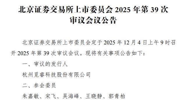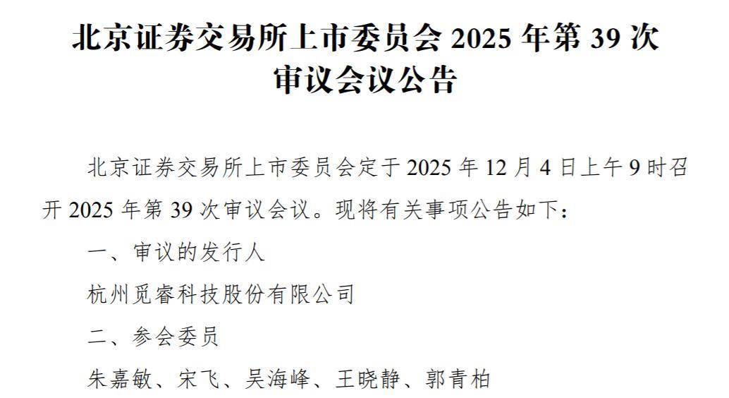 公司上市进展 - 觅睿科技将于12月4日接受北交所上市委员会审议 [2] - 公司上市保荐机构为国信证券 [2] 公司业务与定位 - 公司是一家专注于智能网络摄像机及物联网视频产品的高新技术企业 [2] - 主营业务为集硬件、软件、云服务、AI为一体的智能网络摄像机及物联网视频产品的研发、设计、生产和销售 [2] 历史财务表现 - 2022年至2024年营业收入持续增长,分别为5.49亿元、6.73亿元、7.43亿元 [3] - 2022年至2024年归属于母公司股东的净利润持续增长,分别为3914.66万元、7157.64万元、8165.81万元 [3] - 毛利率从2022年的26.42%提升至2024年的35.14% [3] - 2025年上半年营业收入为3.57亿元,归属于母公司股东的净利润为3218.07万元 [3] 近期业绩与预测 - 2025年1-9月营业收入为5.49亿元,归属于母公司股东的净利润为5077.04万元,相比去年同期均出现下滑 [4] - 公司预测2025年度营业收入为8.02亿元,相比去年同期略有上升 [4] - 公司预测2025年度归属于母公司股东的净利润为7822.22万元,相比去年同期出现下滑 [4] 股权结构与控制权 - 公司控股股东及实际控制人为袁海忠 [6] - 袁海忠直接持有公司本次发行前65.66%的股份 [6] - 袁海忠通过其控制的睿觅投资控制公司本次发行前32.34%的股份 [6] - 袁海忠直接和间接合计控制公司本次发行前98.00%的股份 [6] 募集资金运用 - 公司拟使用募集资金金额3.14亿元,用于总部基地及品牌建设项目、研发中心建设项目 [6] - 相较于申报稿中原计划的3.95亿元募资规模,上会稿中拟募资规模缩减至3.14亿元 [6] - 募资调整包括删除7500万元补充流动资金项目并调减"总部基地及品牌建设项目"的拟投入募资金额 [6] 历史分红情况 - 2023年公司以总股本40,816,327股为基数,向全体股东每10股派发现金红利12.5元(含税) [7] - 2023年合计发放现金红利5102.04万元 [7]