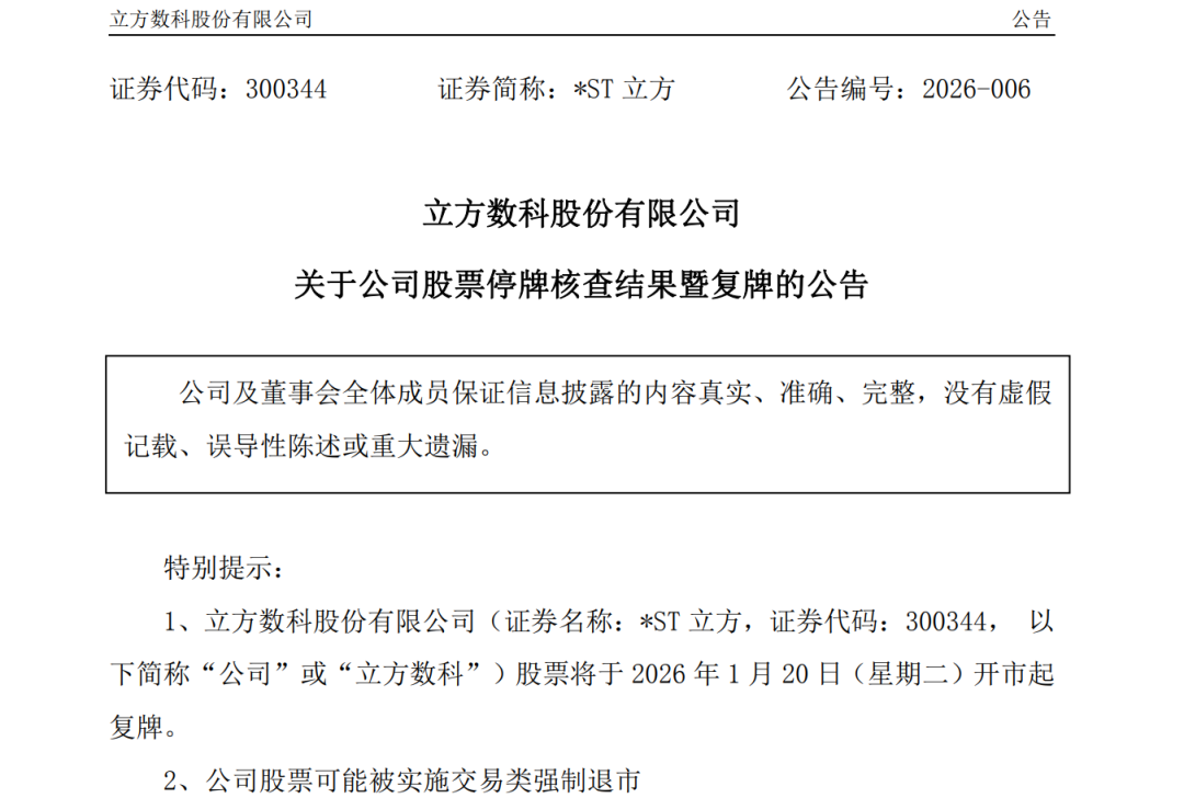 被查明三年虚增营收超6亿,ST立方下周“披星”