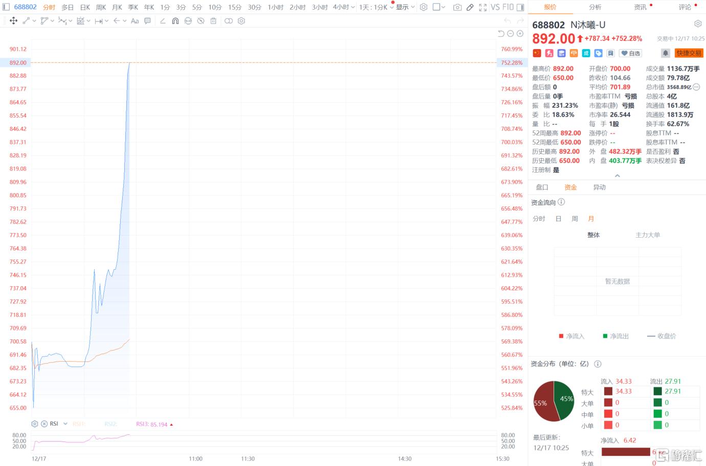 A股异动丨沐曦股份首日上市飙升616%,市值达3000亿