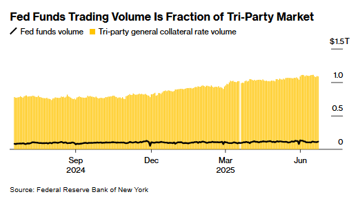 联邦基金利率的局限性 - 联邦基金利率作为银行间隔夜借贷的重要渠道,曾经能够灵敏反映融资环境趋紧的信号,但金融危机和疫情期间的大规模货币刺激导致银行体系美元泛滥,银行纷纷撤离联邦基金市场,将资金直接存放在美联储 [1] - 目前联邦基金市场日均交易量约1100亿美元,仅占商业银行资产的0.5%,远低于2008年前2%的水平,主要贷款方为联邦住房贷款银行,借款方以外资机构为主 [1] - 相比之下,以国债为抵押的回购协议日均交易量达数万亿美元,成为有担保隔夜融资利率(SOFR)等基准利率的定价基础 [1] 联邦基金利率的替代方案 - 克利夫兰联储主席哈马克表示需要反思联邦基金利率的相关性,而其他一些利率的相关性如何 [3] - Wrightson ICAP的Crandall认为联邦基金利率已不再像过去几十年那样处于货币市场动态的核心位置 [3] - 摩根大通美国短期利率策略主管Teresa Ho认为联邦基金利率不是衡量流动性的好指标,因为联邦住房贷款银行并非市场真正的流动性提供者 [4] 融资市场的潜在压力 - 2019年美联储缩表至1.5万亿美元时,因未察觉银行准备金匮乏,叠加国债结算与企业缴税等因素,曾导致关键利率飙升并引发央行干预 [5] - 当前银行准备金虽然达到3.38万亿美元,但美联储理事沃勒暗示可能允许其降至2.7万亿水平 [5] - 美国银行策略师警告,随着财政部放缓现金储备重建,9月可能出现流动性压力,逆回购工具使用量或趋近于零,加之月中缴税与债券结算将加剧资金外流 [7] 替代指标的讨论 - Wrightson的Crandall主张纽约联储监管的三方通用抵押品利率(TGCR)等回购指标更适合替代联邦基金利率,因其更能反映真实资金融通 [7] - 前纽约联储主席William Dudley领衔的"三十人小组"建议联邦公开市场委员会应停止公布联邦基金利率目标区间,转而以IORB作为政策锚点 [7] - 前美联储理事会副主席Richard Clarida表示重要的是所有短期利率之间的相对走势,联邦基金利率并没有那么重要 [7]