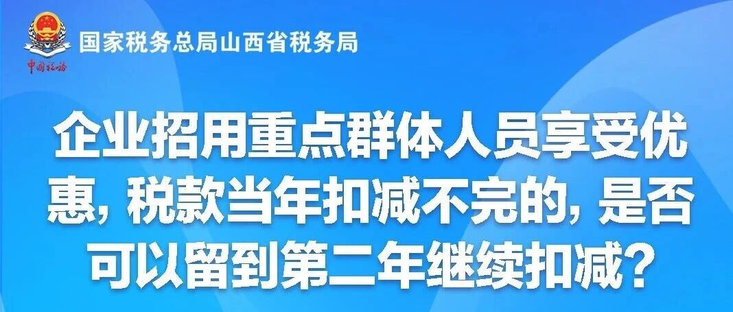 企业招用重点群体人员享受优惠,税款当年扣减不完的,是否可以留到第二年继续扣减?