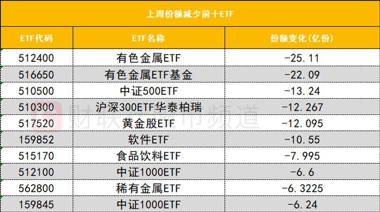 有色金属ETF上周份额大减,顶级游资扎堆捷成股份!
