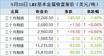 金属普跌 期铜下跌,中国国庆长假前出现获利了结【9月30日LME收盘】