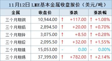 金属普涨 期铜上扬,受美国政府停摆有望结束乐观情绪支撑【11月12日LME收盘】