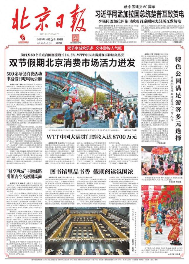 北京日报头版关注:WTT中国大满贯门票收入达8700万元