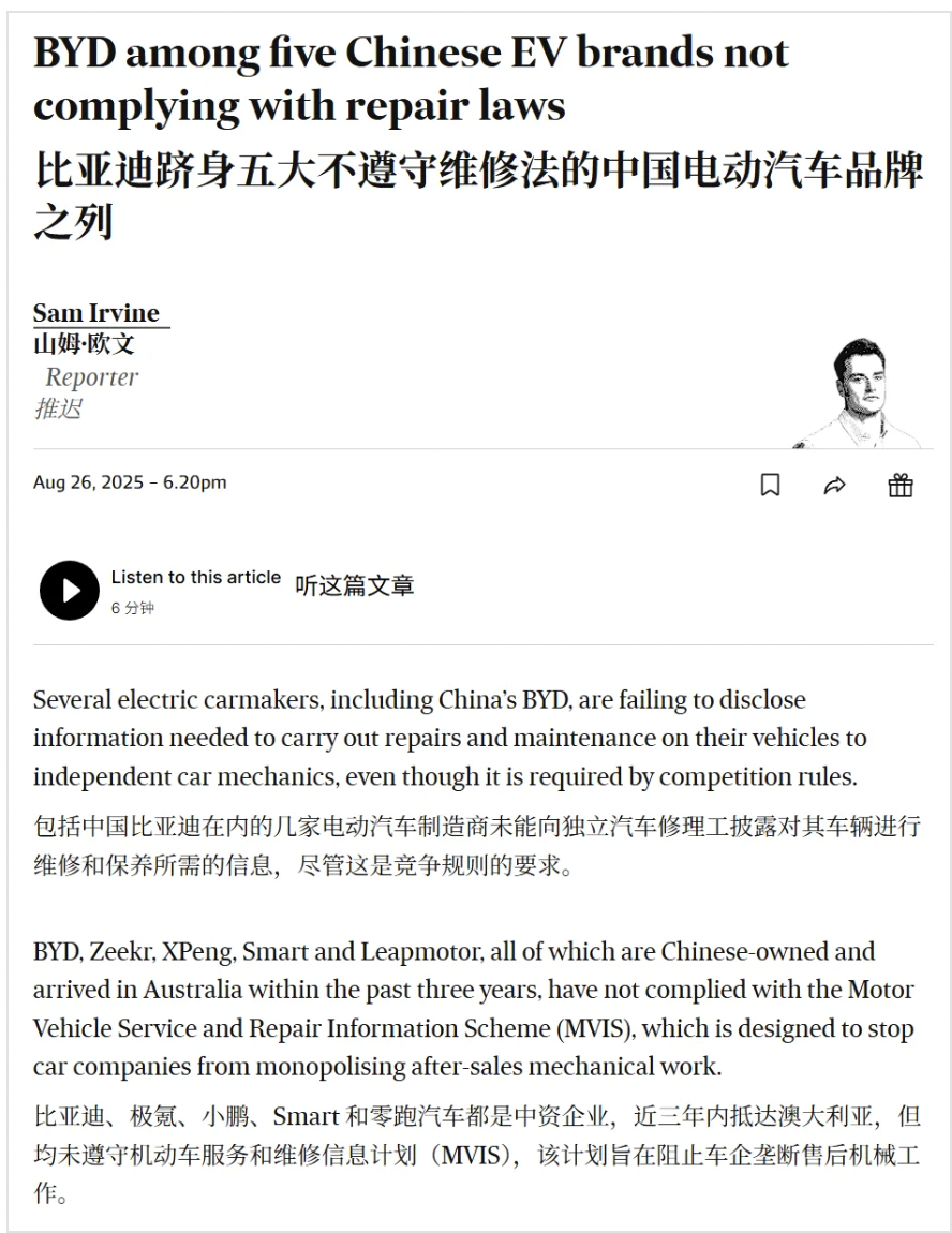 所以为什么新能源车修起来这么贵?为了搞清楚这个问题,我们找了车企、电池厂的售后人员,还有修理厂的老板都聊了聊,今天就来和大伙儿说说。 文章开始前先声明一下,我们讨论的都是家用车的售后,像网约车完全是另一套体系,就不讨论了。 首先,新能源修车到底有多贵? J.D.Power调查了2-12个月车龄的新车车主发现,轻微剐蹭的事故下,新能源汽车的维修成本在5000元~1.5万元,而燃油车只要2000元~8000元。如果赶 上严重碰撞,新能源车可能修车比买新车都贵,干脆直接报废,而油车花上5万元~15万元还能修。 之前,一辆特斯拉Model Y,在倒车时撞到墙角,维修费用要20万元,要知道这辆车的价格也就28万,花这么多钱修修,真不如再买一辆新的。相比之 下,丰田凯美瑞撞得发动机舱都损毁了,维修费用也才7万元。 5家中国车企在澳洲涉嫌垄断售后业务,可能要被重罚? 前段时间,澳大利亚媒体就曝出这么个事,说比亚迪、极氪等车企,没有按照当地《机动车服务和维修信息制度》(MVIS)的规定,公开诊断软件、维 修参数等信息,搞得外面修理厂没法修这些车。 所以这几家车企,可能会面临最多1000万澳币,大约4700万人民币的罚款。 虽 ...