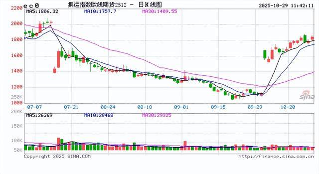 10月29日收盘,国内期货主力合约涨多跌少。集运欧线涨超5%,焦煤涨超3%,中证500、鸡蛋涨超 2%;下跌方面,菜籽、菜油跌超2%,棕榈油、燃油跌超1%。 来源:新浪网 | 名称 武帝 合肥朝阳分 只少量 | 11,44 | | | | 兵机 | 类句 | े क | 美國 | 10 के | 118 | 日增它 | 亮精 | 成品 | 原任 | 开盘 | 3.5.12 | 昨浩 | | --- | --- | --- | --- | --- | --- | --- | --- | --- | --- | --- | --- | --- | --- | --- | --- | --- | --- | | 1 欧线集运2.cc2512 34539 | | 10714 | $5.08% | | 199.5 1870-1 | 10J1.0 | 2 | Pa | 44 | M61C | ■ 3000 | 5.2334 | 1000.5. | 1755.0 | 1010.0 | 1780.3 | 1700.5 | | 2 # 12601 jm2601 4411 1302 11 1102 5 101.4) 10.70m ...