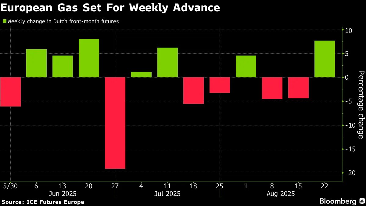 欧洲天然气价格走势 - 欧洲天然气价格出现三周以来首次上涨,基准期货价格本周有望上涨约8% [1] - 荷兰TTF天然气当月期货上涨1.1%,达到33.55欧元/兆瓦时 [1] - 价格此前曾因市场预期可能达成和平协议而跌至一年来最低点 [1] 地缘政治影响因素 - 市场对特朗普结束俄乌战争努力的最初乐观情绪正在消退 [1] - 俄罗斯要求在乌克兰的安全保障问题上拥有发言权并对领土归属问题提出主张,凸显了达成协议的难度 [1] - 分析师认为距离达成一个能让各方都满意的协议还有很长的路要走 [3] - 和平前景遥不可及,俄罗斯能源进一步流入市场的可能性渺茫 [1] 市场供需基本面 - 在即将到来的供暖季,欧洲将不得不与其他地区买家竞争天然气供应 [1] - 欧洲天然气市场正为重要供应国挪威即将进行的维护工作做准备,这将导致供应量减少 [3] - 可能需要提高价格来吸引液化天然气货物,以与亚洲买家争夺供应 [3]