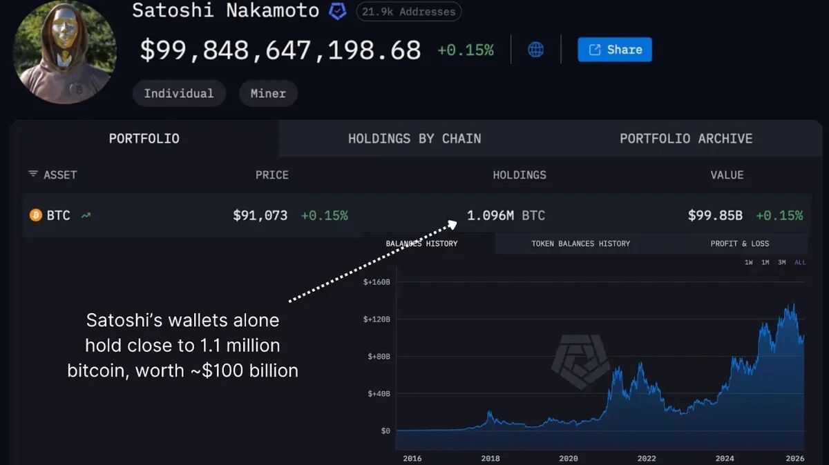 量子计算对比特币安全的潜在威胁 - 量子计算机的崛起对现有加密体系构成潜在威胁,比特币的安全依赖于椭圆曲线数字签名算法(ECDSA),传统计算机破解其签名需数百万年,而量子计算机可能只需几分钟或几小时[3] - 约32.7%的比特币供应量(约651万枚)面临潜在的量子计算攻击风险[3] 中本聪持有的比特币资产状况 - 比特币创始人中本聪的账户据传持有110万枚比特币,价值约1000亿美元(近日估值有所下滑),且该资产从未被动用过[1] - 这笔巨额资产暴露在老旧加密密钥之下,存在未来被量子计算机盗窃的风险[2] 行业对量子威胁的认知与应对 - 有观点认为量子计算对比特币的威胁“为时过早”,比特币作为可动态升级的协议,可通过后量子密码学迁移来完全抵御量子威胁,其核心价值根基未被动摇[3] - 中本聪的巨额沉睡比特币资产,预计将在未来几年随着量子计算技术的突破,持续成为市场讨论的焦点话题[3]