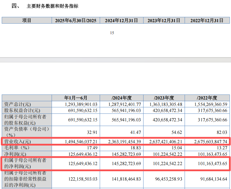 IPO审议与募资计划 - 公司将于11月14日接受北交所上市委审议,IPO进入关键阶段 [1] - 公司计划募集资金4.13亿元,用于扩产及补充流动资金,此金额较原计划5.52亿元缩水25% [1][12] - 募投项目调整包括取消“年产15万吨微生态制剂系列产品生产项目”及将补充流动资金额度减少1000万元 [12] 财务业绩表现 - 公司营业收入呈现连续下滑趋势,2022年至2024年及2025年上半年分别为26.76亿元、26.37亿元、23.63亿元和14.95亿元 [3] - 同期净利润分别为1.01亿元、1.01亿元、1.45亿元和1.26亿元,出现“增利不增收”局面 [4] - 2022年至2024年累计分红1.8亿元,占同期累计净利润3.47亿元的比例接近52% [13] - 公司公告拟利用不超过2亿元闲置自有资金进行委托理财,截至2025年6月末现金及等价物余额为1.68亿元 [13] 主营业务与产品分析 - 公司主营业务为新型肥料及其中间体的研发、生产、销售,包膜尿素产销量行业第一,腐植酸复合肥料产销量行业第二 [3] - 新型肥料业务营收从2022年19.68亿元降至2024年19.24亿元,均价从2842元/吨降至2596元/吨 [4] - 新型肥料中间体业务营收从2022年4.35亿元降至2024年3.02亿元,均价从3442元/吨降至2681元/吨 [4] - 普通肥料业务营收从2022年2.3亿元降至2024年1.24亿元,均价从3035元/吨降至2820元/吨 [4] 在手订单与市场环境 - 公司在手订单金额逐年下滑,2022年末至2024年末分别为6.29亿元、4.7亿元和3.32亿元,2025年6月末进一步缩减至1.40亿元 [8] - 订单下降主因是肥料原材料价格下降导致客户采购行为趋于保守,订单周期缩短 [8] - 中国复合肥行业产能利用率较低,2024年为28.61%,且2025年预计将新增产能400万吨 [13] 产能利用与募投项目合理性 - 被取消的微生态制剂项目在2025年上半年产能利用率为85.03%,但产销率持续低迷,仅为4.24% [12] - 2025年上半年公司生产近2100吨微生态制剂,但仅售出100吨 [12] 存货状况与跌价风险 - 报告期各期末存货账面价值分别为3.34亿元、3.13亿元、2.77亿元和2.07亿元,占流动资产比例最高达32.38% [14] - 存货结构中原材料和库存商品占比最高,两者比例均在40%以上 [14] - 存货跌价准备计提相对克制,报告期各期末计提金额在566.99万元至661.60万元之间,计提比例介于1.67%至2.87% [14] 销售模式与客户分析 - 贸易商销售占比在多数报告期内为2.3%至5.83%,但2023年异常飙升至8.14% [15] - 2023年第一大贸易商兼第二大客户为“泰安罗森化工有限公司”,该公司成立于2022年,注册资本500万元 [16] - 前十大贸易商的毛利率平均值报告期内分别为11.74%、15.72%、7.71%、6.02%,远低于公司同期综合毛利率 [17] 关联交易与定价公允性 - 公司向实际控制人控制的合泰检测采购检测服务,2022年至2024年采购金额分别为232.84万元、218.90万元和104.70万元 [18] - 公司向合泰检测采购的土壤检测和肥料检测单价在各报告期内均高于合泰检测对其他客户的收费水平 [18] - 公司解释价差原因为检测项目和难度不同,并测算对利润影响极小,在0.04万元至2.81万元之间 [19]