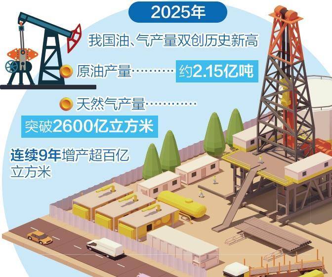记者从2026年全国能源工作会议上获悉,今年全国发电总装机预计超过38亿千瓦、同比增长14%,全社 会用电量预计首超10万亿千瓦时。同时,油、气产量双创历史新高,原油产量约2.15亿吨,天然气产量 突破2600亿立方米、连续9年增产超百亿立方米。国家能源局有关负责人表示,今年能源安全保障有力 有效,保供成效是"十四五"以来最好的一年。 2025年,能源领域在防范应对各种冲击挑战中展现出强大韧性。能源安全保障方面,实现煤炭稳产稳供 稳价,全年原煤产量将达48亿吨以上,进口约4.7亿吨,加快建设储备产能9000万吨/年以上,煤炭供给 裕度保持合理水平、供给弹性持续增强;有力有效应对迎峰度夏电力负荷20次超去年峰值考验,油气增 储上产"七年行动计划"胜利收官,能源资源互补互济水平持续提升,电力系统安全形势保持稳定。 能源绿色低碳转型方面,非化石能源消费比重将超额完成20%的目标任务。能源投资增势强劲向绿向 新,新能源实现更高质量跃升式发展,重大水电核电项目加快建设,新型电力系统建设稳步推进,化石 能源清洁高效利用迈出新步伐。 科技创新水平提升方面,能源领域新质生产力加快培育。能源自主创新能力不断增强,人工智能与能源 ...