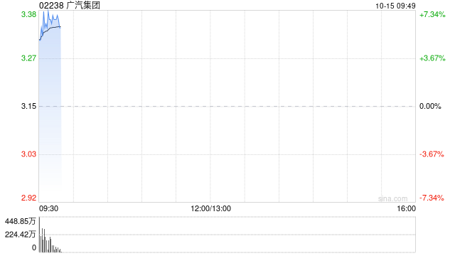 广汽集团涨超6% 联合京东、宁德时代推新车 将于11月9日发布