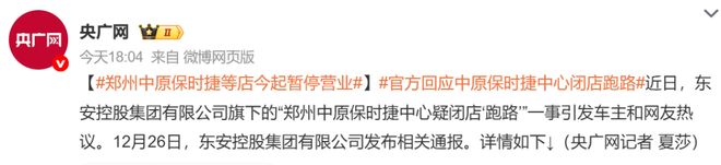 近年来,随着市场经济下行、消费降级严重、汽车行业价格战等 因素,集团实际经营情况困难,经集团研究决定,自 2025年12月 26日起,郑州中原保时捷、贵阳孟关保时捷、郑州东锦大众店暂停 营业,店内全体员工放假,具体恢复营业时间待定,放假期间员工 薪酬(劳务外包除外)暂时按照当地最低生活标准发放。 关于员工账款问题,集团正在积极筹措资金,预计在 30日内分 批次、按比例处理完毕;关于员工工资问题,集团预计在 60日内发 放完毕;关于停业期间的社保问题,集团将正常缴纳;关于拖欠客 户合格证的问题,集团正在积极与各银行和厂家沟通,近期有望达 成沟通结果,尽快将合格证交付给客户;关于供应商欠款问题,集 团将会分批次解决;关于客户定金和储值保养问题,集团将会分批 次有序解决。 东安控股集团有限公司旗下的"郑州中原保时捷中心疑闭店'跑路'"一事引发热议。 东安控股集团有限公司12月26日发布相关通报称,集团实际经营情况困难,经集团研究决定, 自2025年12月26日起,郑州中原保时捷、贵阳孟关保 时捷、郑州东锦大众店暂停营业,店内全体员工放假,具体恢复营业时间待定,放假期间员工薪酬(劳务外包除外)暂时按照当地最低生活标准 ...