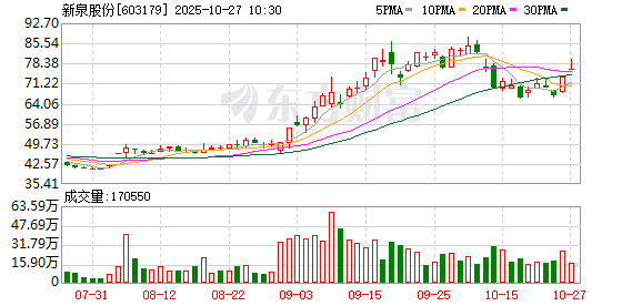 10月20日,新泉股份涨5.29%,截至发稿,报69.69元/股,成交3.80亿元,换手率1.13%,总市值342.65 亿元。 资料显示,江苏新泉汽车饰件股份有限公司位于江苏省常州市新北区黄河西路555号,成立日期2001年4 月28日,上市日期2017年3月17日,公司主营业务涉及提供汽车饰件整体解决方案。 从基金十大重仓股角度 渤海汇金低碳经济一年持有期混合发起(016700)基金经理为滕祖光。 截至发稿,滕祖光累计任职时间11年196天,现任基金资产总规模1307.28万元,任职期间最佳基金回报 229.29%, 任职期间最差基金回报-52.75%。 风险提示:市场有风险,投资需谨慎。本文为AI大模型自动发布,任何在本文出现的信息(包括但不 限于个股、评论、预测、图表、指标、理论、任何形式的表述等)均只作为参考,不构成个人投资建 议。 责任编辑:小浪快报 数据显示,渤海汇金资管旗下1只基金重仓新泉股份。渤海汇金低碳经济一年持有期混合发起 (016700)二季度持有股数1.3万股,占基金净值比例为4.67%,位居第三大重仓股。根据测算,今日浮 盈赚取约4.55万元。 渤海汇金低碳经济一年持有期混合发起( ...