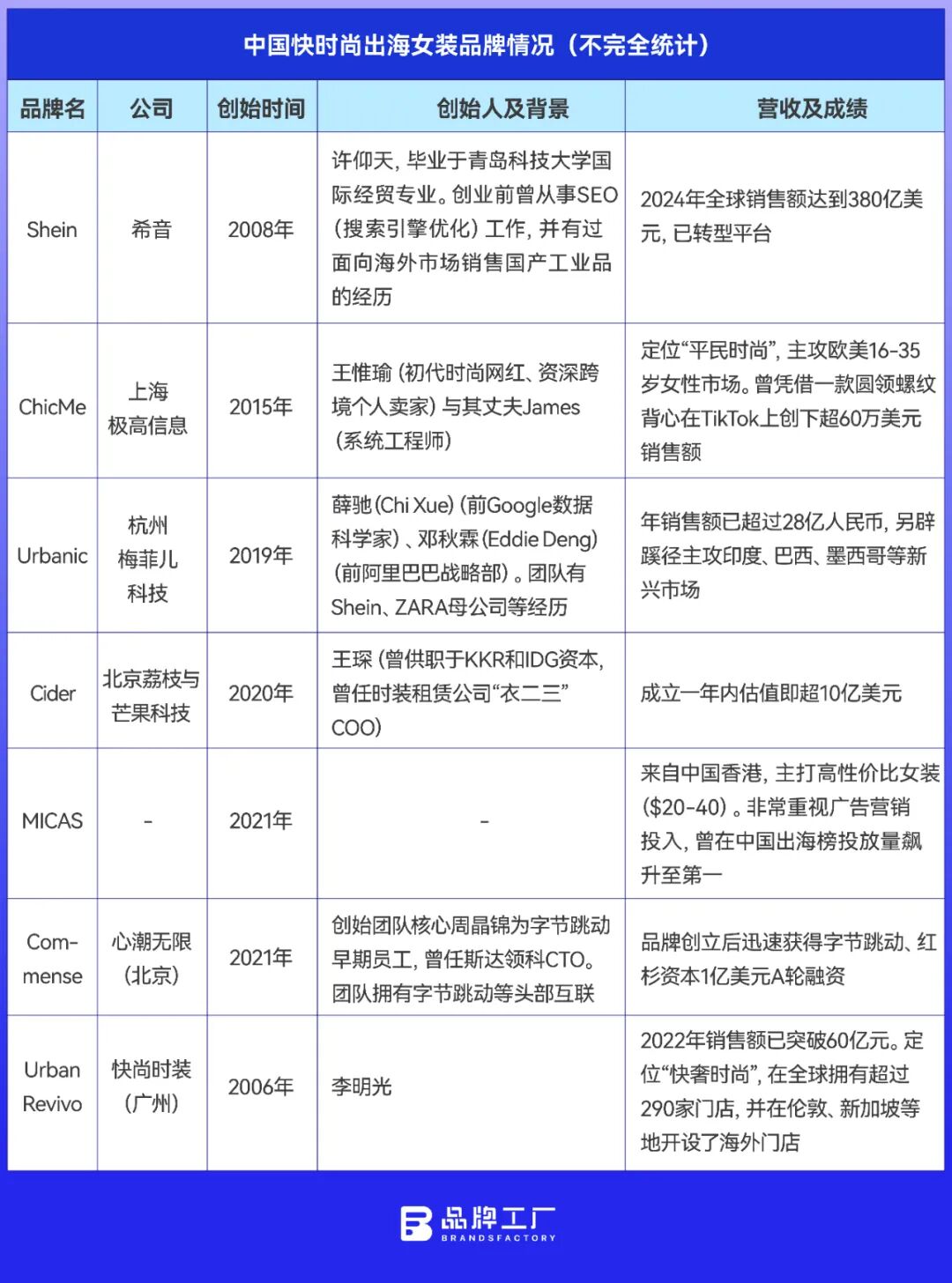 当你走进伦敦西区那栋2700平方米的时尚旗舰店,玻璃橱窗里陈列着极简廓形的大衣、结构感十足的西装裙。你可能以为那是Zara或H&M,但其实,它 来自中国。 这个名为Urban Revivo(UR)的品牌,起家于广州,如今正高调登陆伦敦、纽约和新加坡,计划在未来五年开出200家海外门店。 在过去十年里,中国服装更多以代工厂的身份出现;而如今,它们正以品牌的姿态回到全球主流零售舞台。 从UR到Cider、Halara,再到BloomChic、Cupshe,一批新生代女装品牌正在重塑中国制造的形象。它们懂算法、懂社交媒体、懂用户审美,也懂全球女性 的自信与欲望。 这一波女装出海浪潮,已不仅是价格的竞争,而是一场关于文化、设计与身份认同的较量。 快时尚浪潮中的新一代Shein们 如果说Shein属于中国快时尚品牌的第一波浪潮,那么过去几年间,一批更年轻、更懂消费者、更有品牌语言的新玩家,正沿着它的轨迹在全球市场掀起 新的浪潮。 Cider由广东创业者王琛创立。王琛毕业于加州大学伯克利分校,曾就职于国际顶级投资机构KKR和IDG资本,后加入共享衣橱平台"衣二三"担任首席运营 官,积累了丰富的投资和服装行业经验。2020 ...