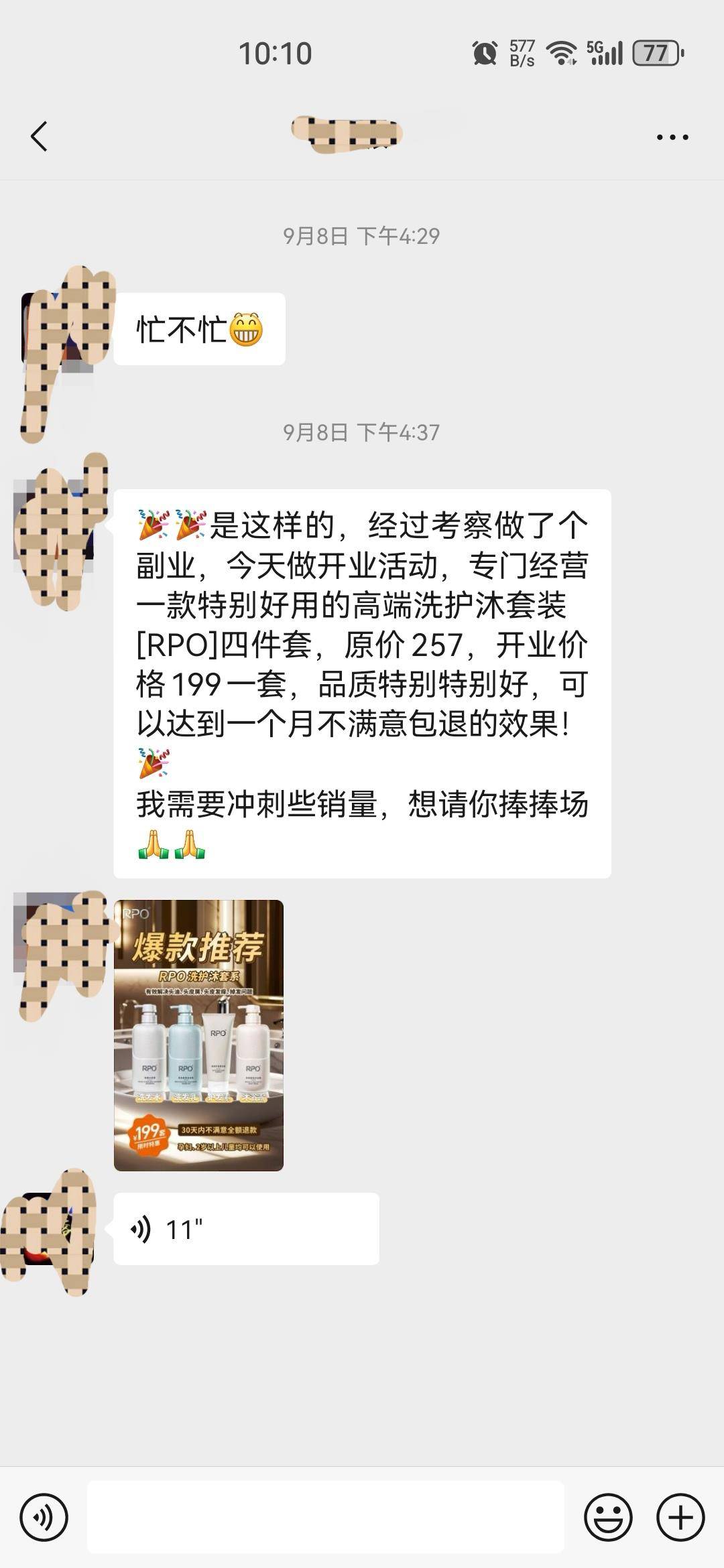 文章核心观点 - 有组织的营销团队利用熟人关系进行脚本化推销,通过“人情”和“只差最后几套”等话术诱导消费,形成新型“人情消费”陷阱 [1][5] 营销模式与策略 - 营销团队以“免费领礼品”或“做兼职”为诱饵,在线下获取消费者微信账号临时操作权限,由专业销售人员统一群发推销信息 [5] - 团队准备标准化话术,主要分为“冲代理”和“厂家促销”两类,均强调“只差最后几套”等情绪化表达以削弱接收方防备心理 [5] - 该模式被称为“熟人裂变”,利用熟人关系进行推广,其转化率远高于普通广告 [5] 操作手法与产品实质 - 部分团队教导参与者在遭遇质疑时,以“帮朋友转发”为由进行应对,避免穿帮 [5] - 推销产品多为贴牌代工的快消品,成本低廉,与宣传的“高端”、“明星代言”等内容严重不符 [5] - 推销金额多设置在200元左右,例如一套洗护产品原价257元,促销价为199元,利用消费者“小额试水”心理 [1][5] 利用的心理因素 - 利用“面子”心理,尤其当推销方为长辈、老师、领导等关系时,接收方难以拒绝 [5] - 利用人们对熟人的信任,使其信任感被转移到产品本身,从而忽视对产品的核实 [5] - 初次交易完成后,可能以“升级代理”、“冲业绩”等理由进行多次推销,甚至发展为传销式拉人头 [5]