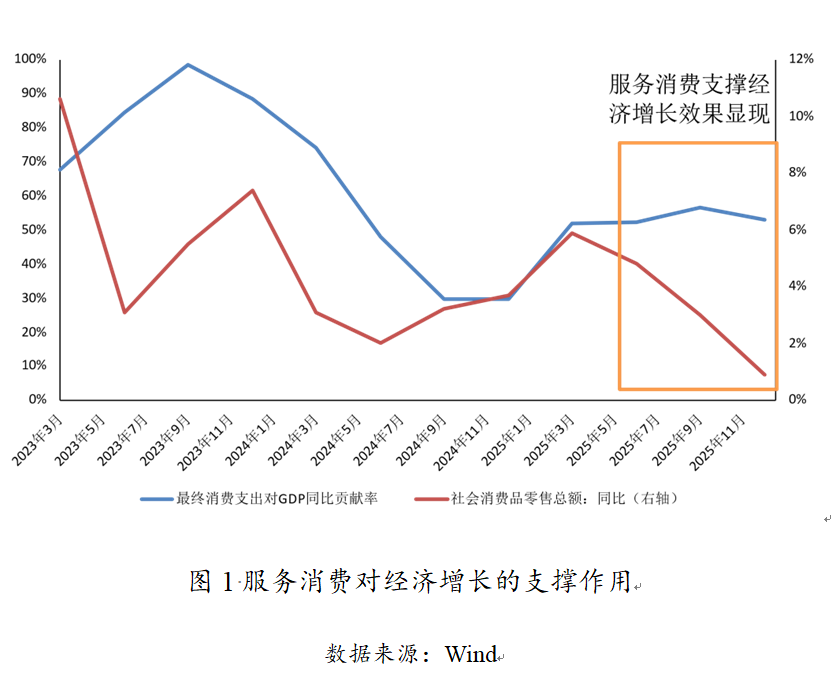核心政策导向 - “十五五”规划建议重提“居民消费率明显提高” 明确未来五年提振居民消费、释放消费潜力的核心政策导向 目标设定兼顾经济转型实际与任务约束性 [1] - 消费增长驱动模式正从依赖短期刺激性政策 转向培育收入支撑、消费意愿、场景供给等内生动力的长效发展模式 [1] - 促消费政策将逐步退出“广撒网”式普惠补贴 转向贴息、定向消费券等精准普惠政策 并依托深层次制度改革打通消费堵点 [13] 消费市场现状与结构 - 我国最终消费支出占名义GDP比重约为54.4% 显著低于东亚发达经济体65%~70%和欧美发达经济体68%~81%的水平 [3] - 消费结构呈现服务消费主导增长与商品消费“量的饱和”并存特征 服务消费占比46%~47% 与美国、日本、韩国等发达经济体超56%的占比存在超10个百分点的差距 [4][5] - 服务消费高速增长 截至2025年末规模接近19.1万亿元 较2020年增长超60% 年均增速超10% 人均服务性消费支出从2013年的5246元攀升至2025年的13602元 年均复合增速8.26% [5] - 服务消费在居民总消费中占比从2014年的40.31%提升至2025年的46.11% 十年间提升近6个百分点 [5] - 家电、汽车等大宗商品消费进入“量的饱和”阶段 以旧换新补贴政策拉动作用边际减弱 [7] 近期政策成效与影响 - 2025年国家通过超长期特别国债累计安排3000亿元专项资金用于以旧换新补贴 [7] - 截至2025年12月24日 全国以旧换新补贴资金平均消耗率超90% [7] - 2025年以旧换新政策全年带动相关商品销售额超2.5万亿元 惠及超3.6亿人次 [8] - 家电领域以旧换新量超12844万台 一级能效产品补贴比例最高达售价20% [8] - 数码产品购新补贴超9015万件 按售价15%给予补贴 [8] - 汽车以旧换新量超1120万辆 个人置换新能源乘用车最高可享2万元补贴 [8] - 电动自行车以旧换新超1291万辆 家装厨卫“焕新”覆盖超1.2亿件 [8] - 补贴政策进入末期 效应边际递减 可能引发市场需求阶段性下滑 并挤压部分中小厂商盈利能力 行业资源向龙头企业集聚 [12] 消费内生动力核心制约因素 - 收入分配失衡是核心制约 2000~2023年我国居民收入占国民收入比重均值约60% 显著低于美国84%的水平 [14] - 2023年居民部门可支配收入占比为61.21% 企业部门收入份额高达23.00% [15] - 2023年我国劳动者报酬占国民收入比重为53.1% 低于美国61.4%、日本70.9%、韩国68%的水平 [15] - 2023年财产性收入占国民收入比重为4.7% 大幅低于美国15.8%、日本7.0%、韩国7.5%的水平 [15] - 过去30年间我国居民从企业部门获得的分红规模不足GDP的1.0% [16] - 预防性储蓄高企 截至2025年11月末居民部门超额活期存款规模约1.36万亿元 超额定期存款余额高达70万亿元 2025年以来累计新增7.6万亿元 [18] - 2025年9~10月居民超额定期存款合计减少2105亿元 显示边际松动迹象 [18] - 家庭资产负债表承压 家庭债务占GDP比重稳定在62%左右 家庭债务与收入之比已达102% [20] - 研究显示家庭偿债收入比每提升1个百分点 消费增速将相应下降0.48个百分点 [20] - 房价较2021年高位平均下跌约30% 推算居民部门住房资产较2022年缩水约50万亿元 [21] - 居民倾向于“更多储蓄”的比例自2023年起持续维持在60%以上 [21] 消费驱动因素结构性演变 - 截至2025年三季度 社会消费品零售总额变动中约50%可由消费意愿解释 较2024年同期的52%小幅回落 [19] - 居民收入增长对消费增长的贡献度同步提升 已成为核心拉动力量 [19] - 2025年全国居民人均可支配收入实际同比增长5.0% [19] - 2025年12月中国消费者信心指数升至89.5% 同比增长3.59% [19] 未来转型路径与建议 - 夯实收入基础 完善企业工资增长与支付保障机制 提高劳动报酬在初次分配中的比重 拓宽居民财产性收入渠道 [22] - 释放服务消费潜力 推动线上线下消费场景深度融合 深挖线下场景体验价值 构建差异化消费场景 [23] - 修复家庭资产负债表 因城施策优化楼市调控 下调房贷利率 规范消费信贷市场 [23] - 强化内生赋能 加大教育与技能培训投入 引导理性、绿色消费理念 [24] - 推动政策协同转型 构建“政策引导、市场主导”机制 完善消费环境与基础设施 [24]