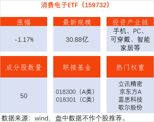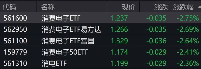 消费电子概念股早盘走弱,相关ETF跌超2%
