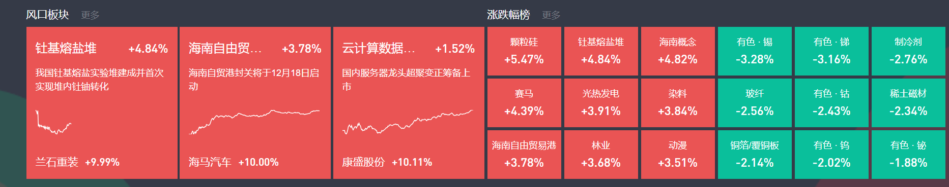 11月3日主题复盘 | 钍基熔盐堆概念大涨,海南自贸再度表现
