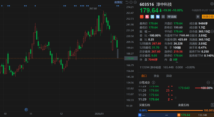淳中科技(603516.SH)今日一字板跌停,股价跌破180元关口,总市值365亿元。消息上,淳中科技预计 2025年1-12月业绩大幅上升,归属于上市公司股东的净利润为2.65亿至2.90亿,净利润同比增长208.86% 至238.00%;预计营业收入为3.50亿至3.70亿元,较上年相比减少1.45亿元至1.25亿元,同比降低29.29% 至25.25%。报告期内,公司为海外大客户定制开发的液冷测试平台等产品,因物料变更及客户产品迭 代等原因,发货量大幅下降,人工智能业务营业收入较上年下降95%左右。(格隆汇) ...