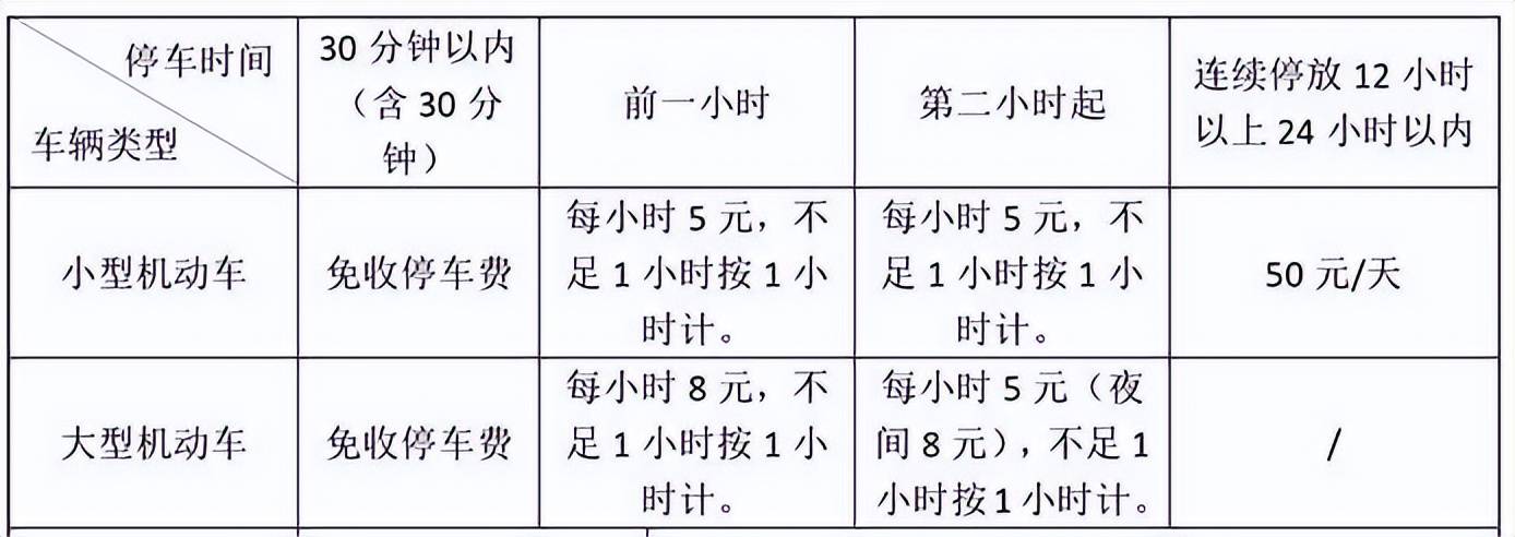 前 30 分钟免费停车,超时后按小时计费。 首小时(不足 1 小时按 1 小时计)收费 5 元,之后每多 1 小时加收 5 元。 全天 24 小时最高收费50元,超出部分不再计费。 | 停车时间 | 30 分钟以内 | | | | --- | --- | --- | --- | | | (含 30 分 | 前一小时 | 第二小时起 | | 车辆炎型 | 伊) | | | | 小型机动车 | 免收停车费 | 每小时 5元,不 | 每小时 5元,不 | | | | 足 1 小时按 1 小 | 足1小时按1小 | | | | 时计。 | 时计。 | | 大型机动车 | 免收停车费 | 每小时 8元,不 | 每小时 5元(夜 | | | | 足 1 小时按 1 小 | 间8元),不足1 | | | | 时计。 | 小时按1小时计。 | 在扬泰机场停车省钱,由于接送机停车都是选择停在机场,收费高低取决于停车时间,并没有可以省钱的办法。而停车多天的情况下,可以通过停到机场附 近的停车场来达到省钱的目的,附近的停车场收费仅11到15左右一天。 除了收费便宜之外,这些附近的停车场还会提供免费接送车,接送往返航站楼跟停车场之间 ...