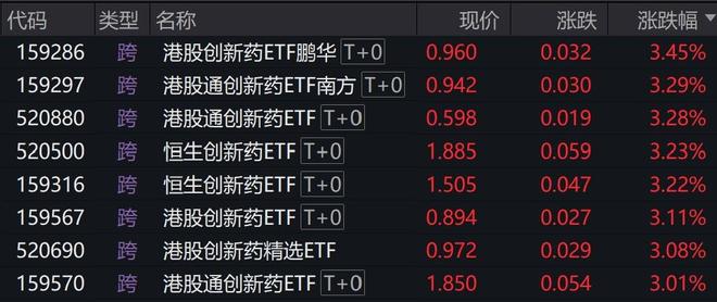 港股创新药概念股走强,多只港股创新药相关ETF涨超2%