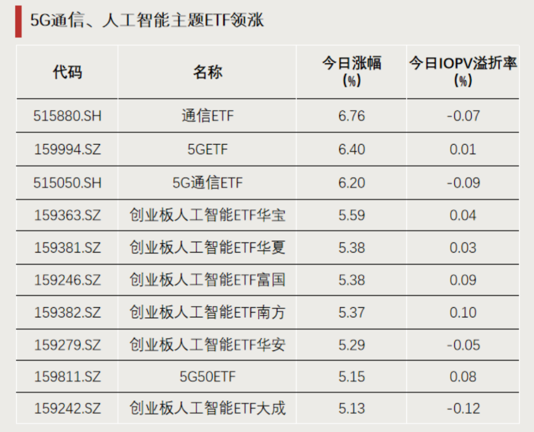 ETF龙虎榜 | 6只产品跻身涨幅前十!这类ETF普涨