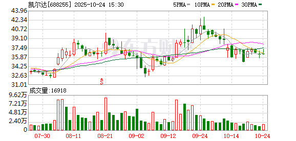 凯尔达大宗交易成交35.90万股 成交额1304.25万元